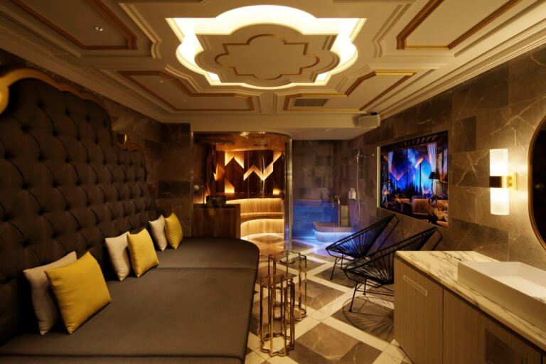 外からは想像できない趣向を凝らした非日常の空間が広がります。